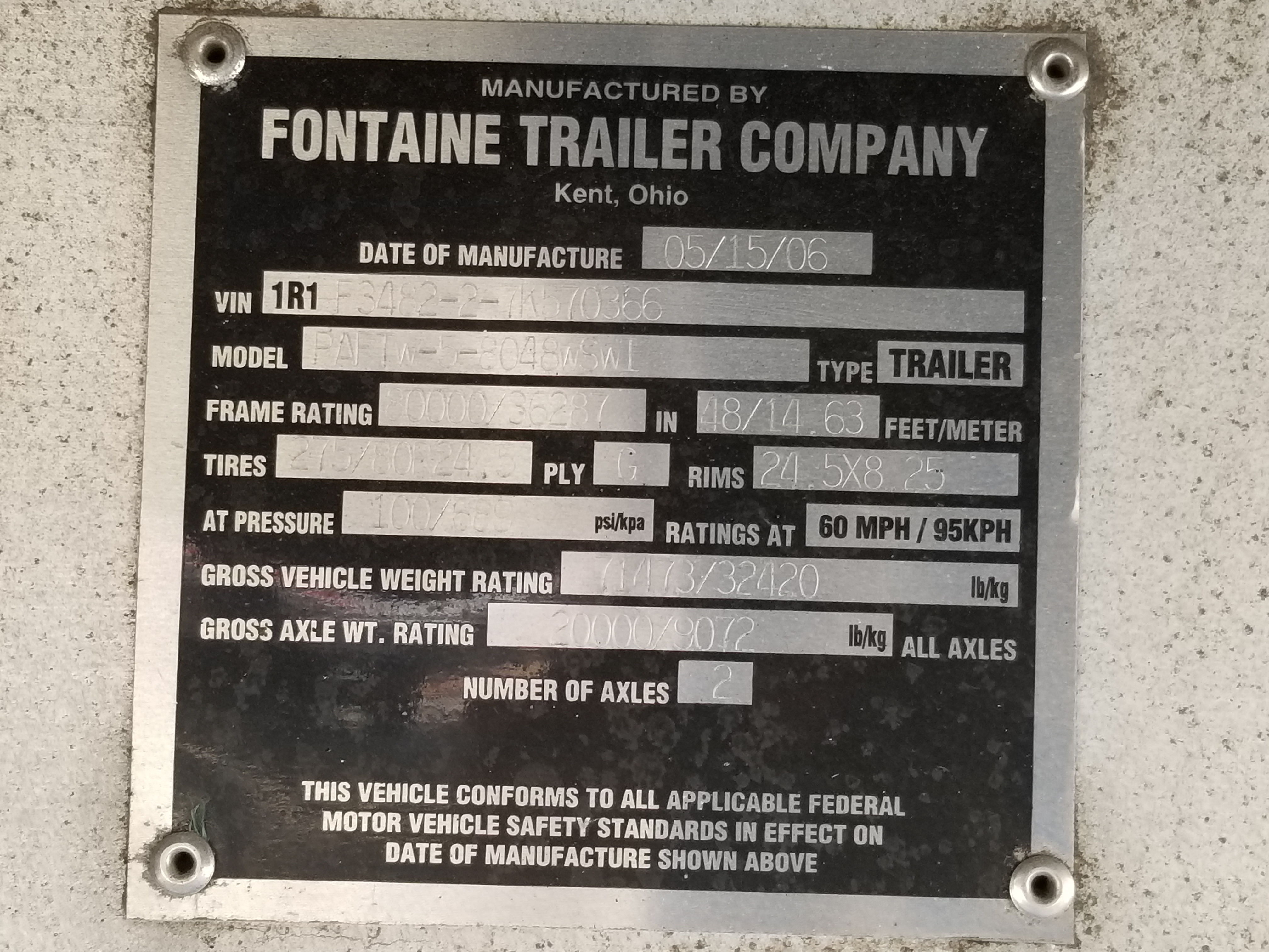 2.2007 FONTAINE PHANTOM ALUMINUM 48′ X 102′ FLAT BED TRAILERS.