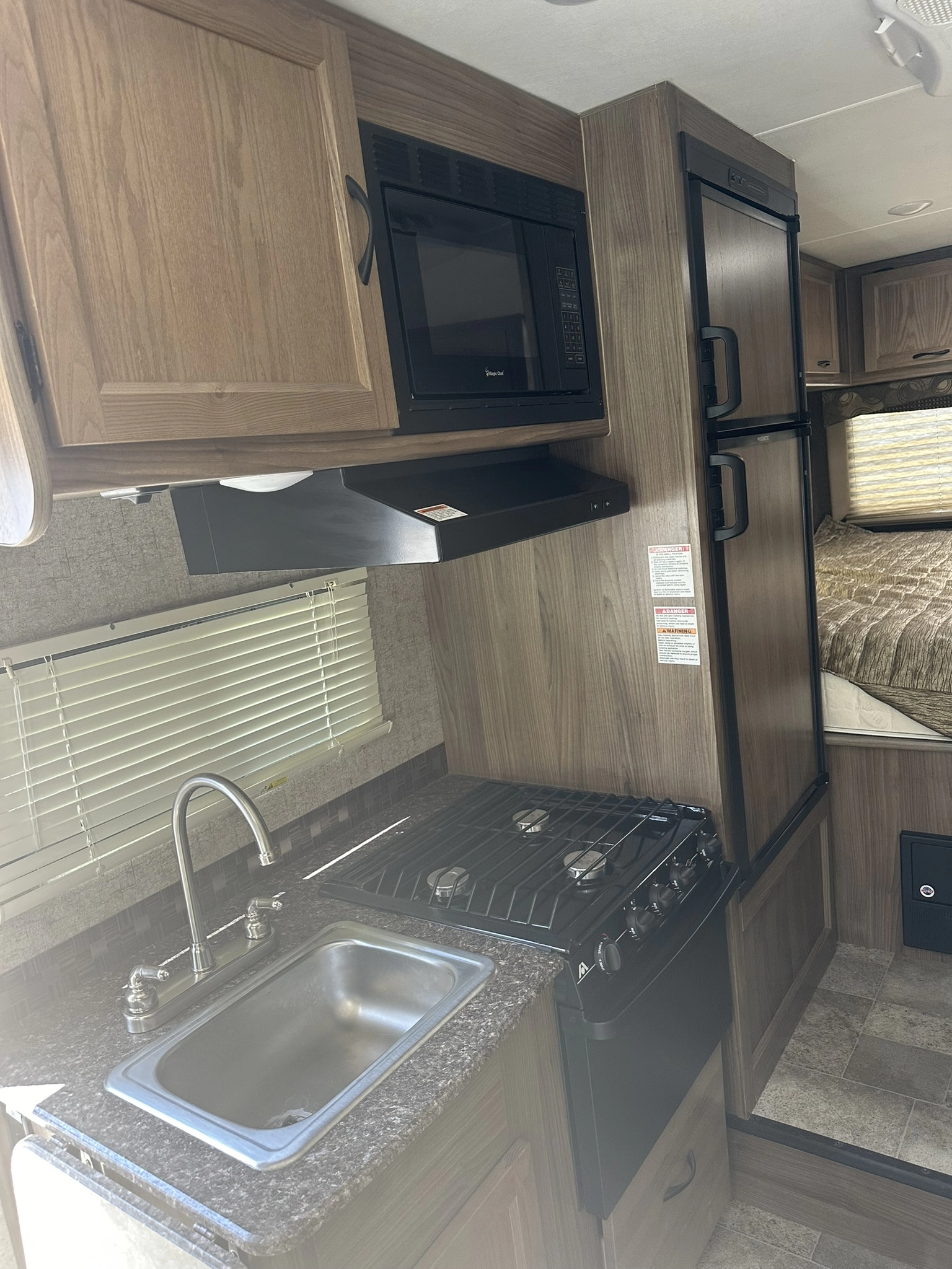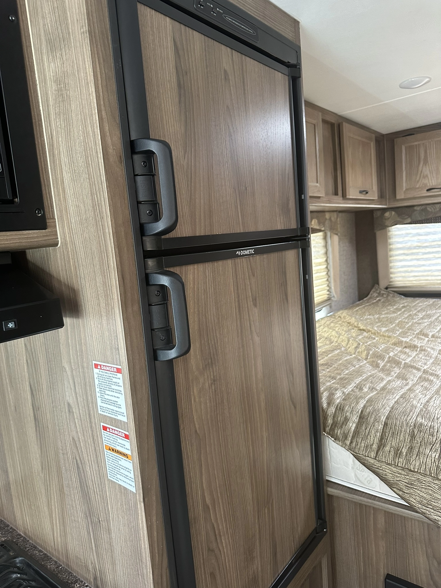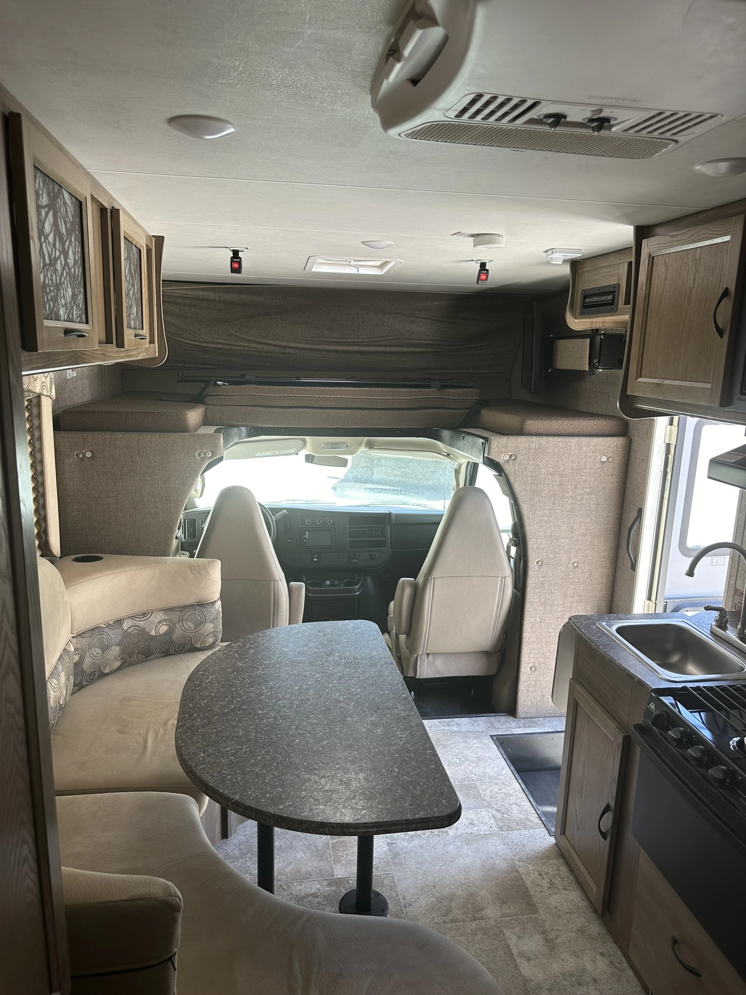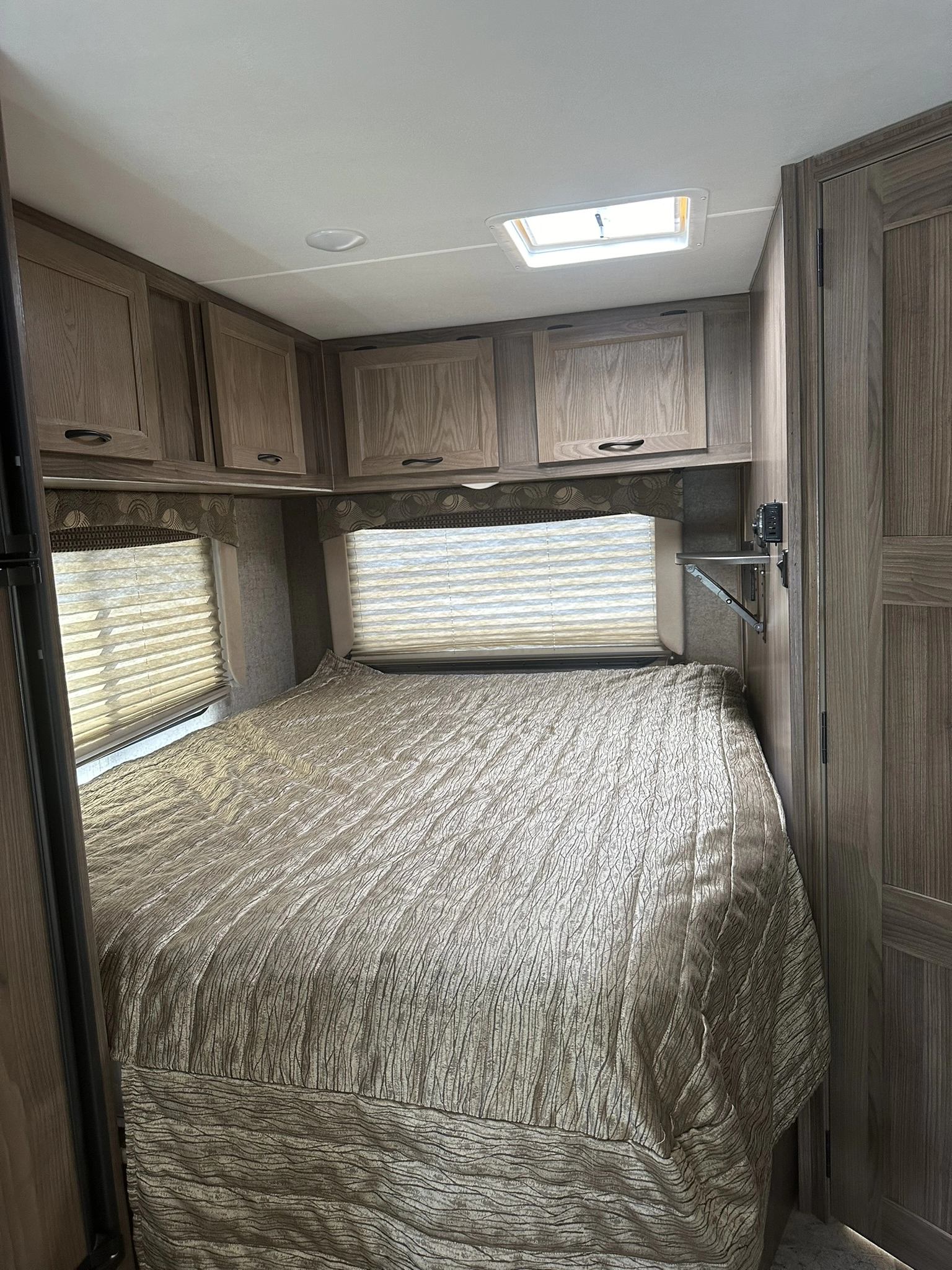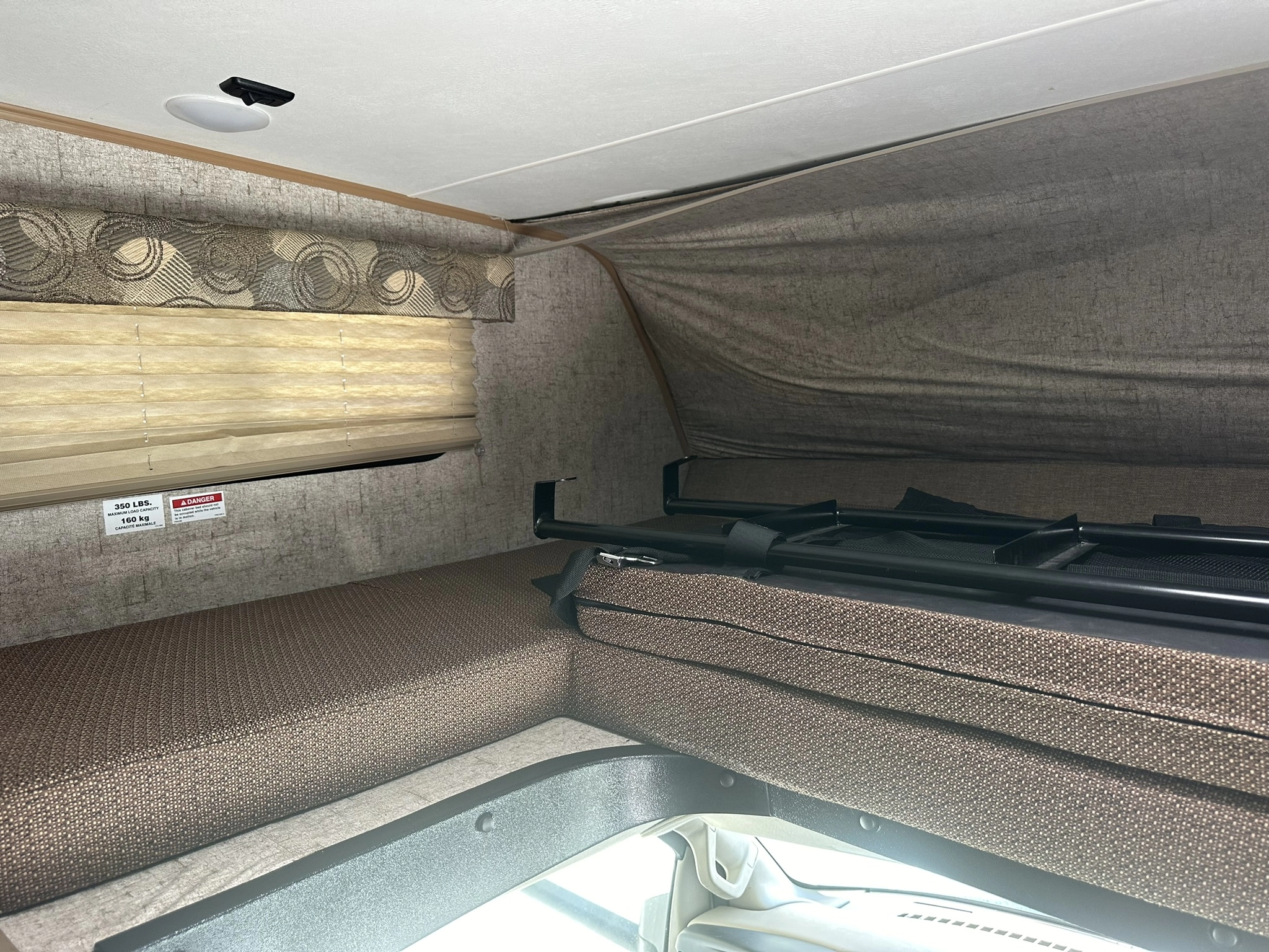 AUTOMATIC TRANSMISSION, FRIDGE, MICROWAVE, GAS OVEN AND TOP GAS BURNERS, ROOF A/C COOL KITCHEN AREA AND A UPPER NICE QUEEN BUNCH BED AND REAR NICE QUEEN BED WITH PUGS AND CHARGER HOOKUPS, AND FLAT SCREEN TV.
