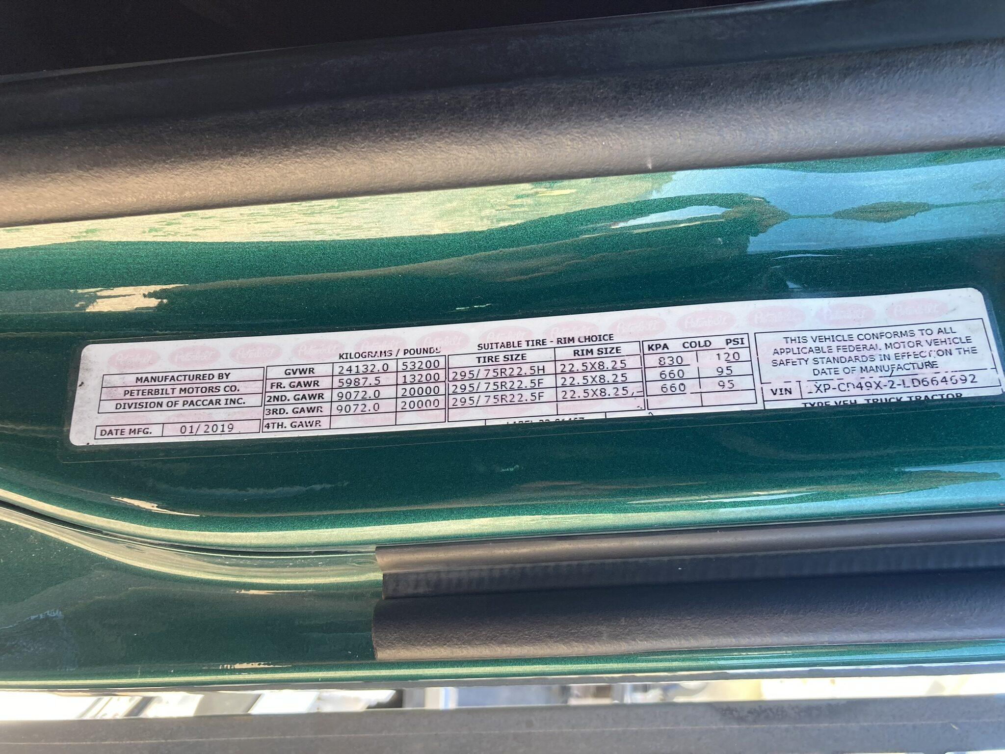 WITH475,669.1 AND 53K GVW AND A 18 SPEED TRANSMISSION W/LOCKER CUMMINS X15 550 HP NEWLY REBUILT MOTOR BY PETERBILT WITH A 3 YEAR EXT WARRANTY ONLY 800 MILES AGO