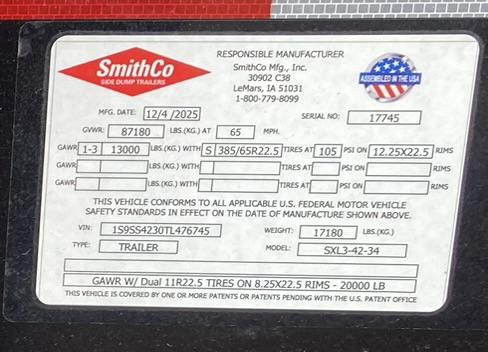 A NEW 2026 TRIPLE AXLE SMITHCO SIDE DUMP TRAILER