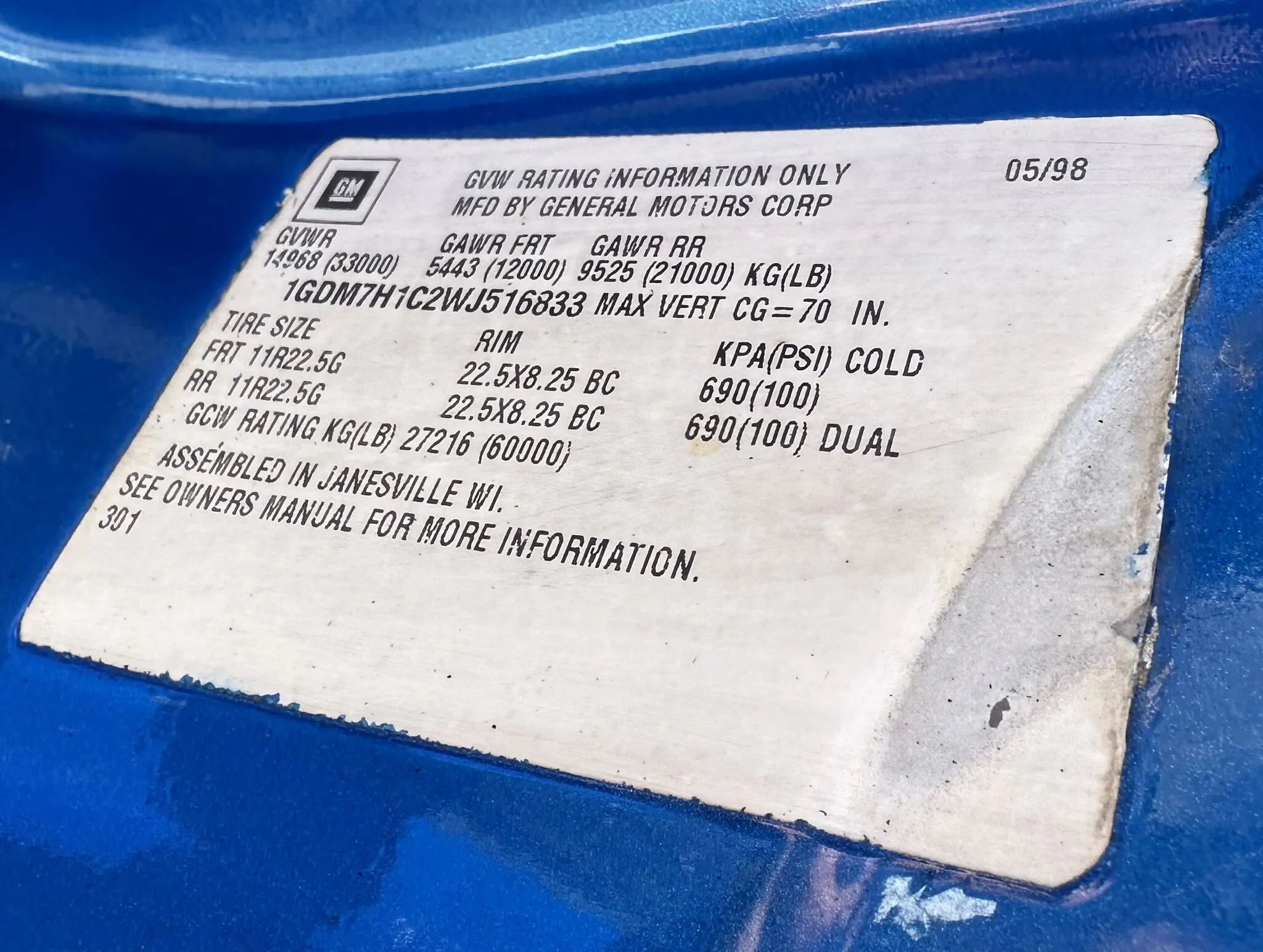 VERY CLEAN 1998 GMC MODEL C7500/7H4-CSR VAC TRUCK