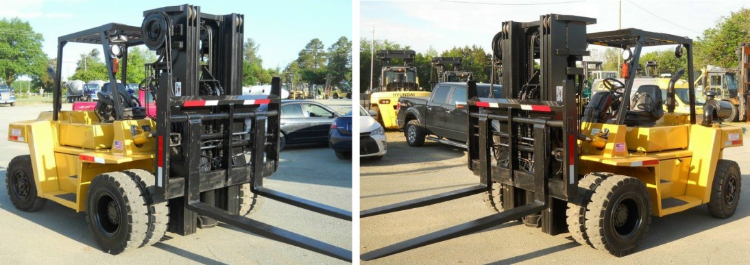 2010 CATERPILLAR DP70E1 #AT20C70161, 15,500 CAPACITY, DIESEL, OPEN R.O.P.S., 97“/159” FULL FREE TRIPLE MAST, FORK POSITIONING, FINGER-TIP CONTROLS, NEWER SOLID PNEUMATICS, 5,257 HOURS, 72” FORKS – VERY GOOD WORK READY CONDITION