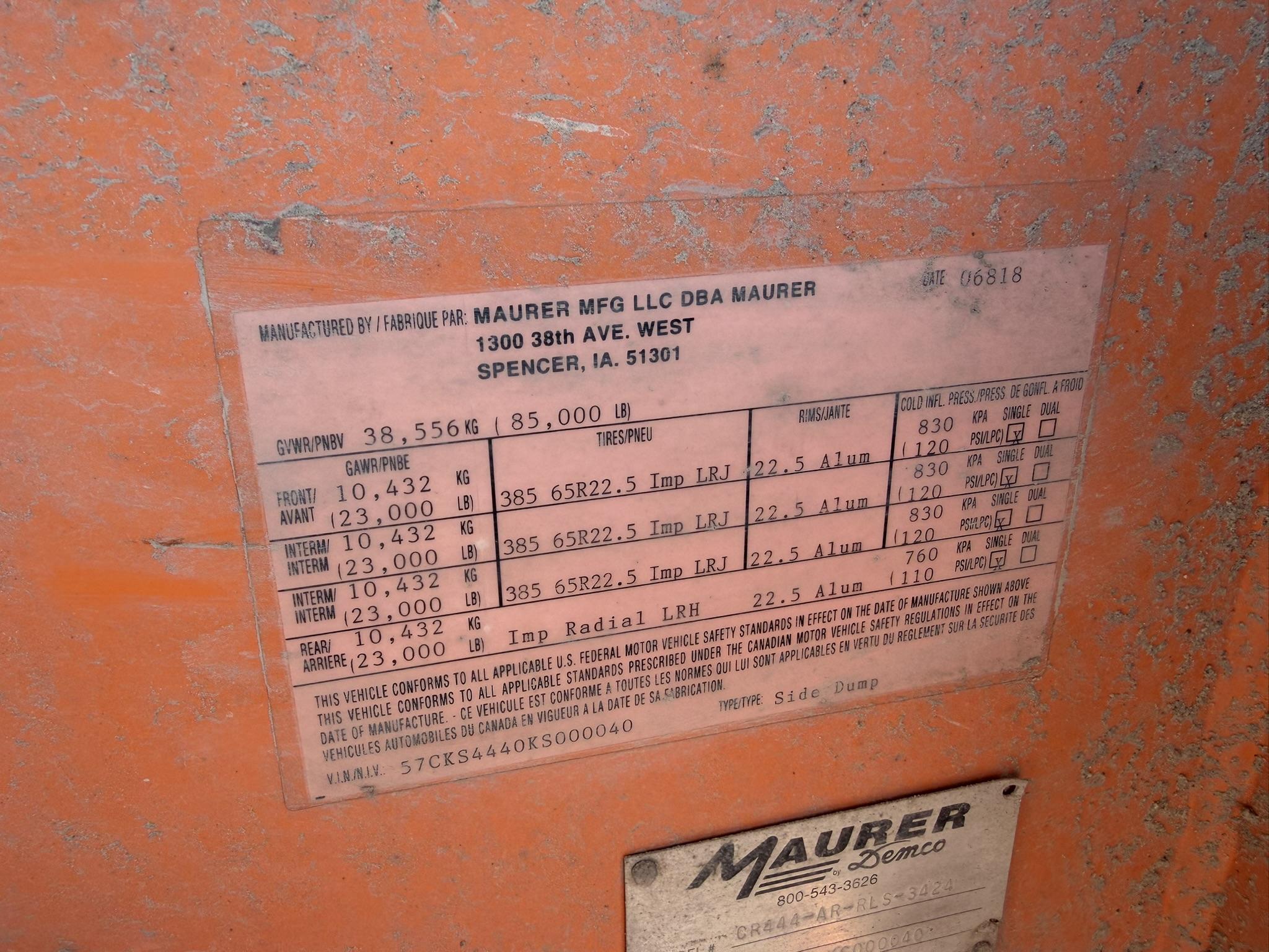 AND A SWEET 2019 DEMCO MODEL CR444-AR-RLS-3424 4 AXLE SIDE DUMP TRAILER