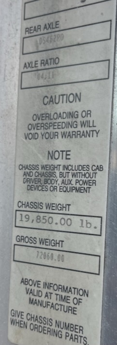 12,000 FRONT AND 40,000 REAR AXLES. 1 LIFT AXLE, REAR HEADACHE RACK GOOD TIRES AND BRAKES.